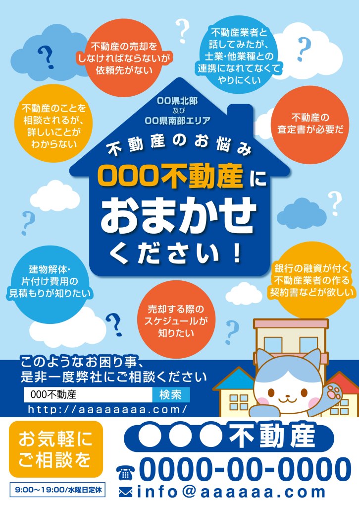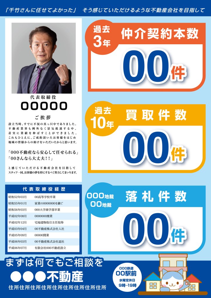 不動産チラシ 投稿者:DIVINE DESIGN2021年3月23日カテゴリー:未分類 コーポレートカラーがブルーとのことでしたので、ブルー系でまとめています。A4裏表 おもて面 裏面 共有: クリックして X で共有 (新しいウィンドウで開きます) X Facebook で共有するにはクリックしてください (新しいウィンドウで開きます) Facebook いいね 読み込み中… 関連